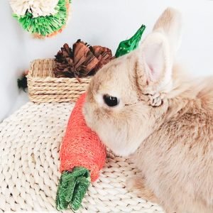 Chewing is an important natural behavior for rabbits, so be sure to provide a variety of rabbit chew blocks, apple sticks, and other dental chew toys for bunnies. These natural rabbit chews give your furry friend an outlet for their innate need to gnaw and nibble. The hay-filled chew toys also encourage foraging.