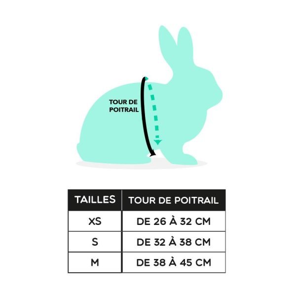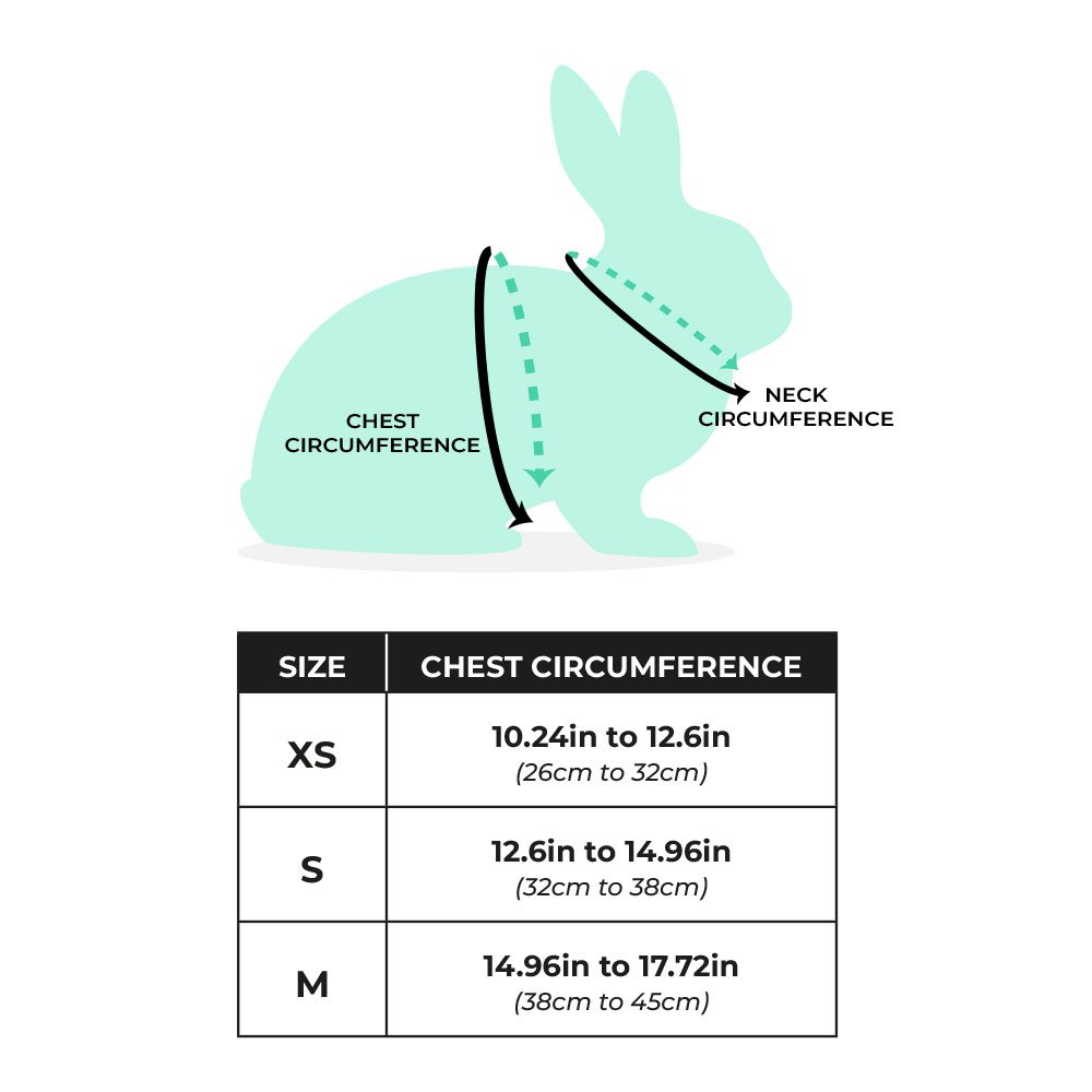 This harness is designed for small to medium rabbits. If your bun is a larger breed like a Flemish Giant, the M size (up to 17.72″) may not be enough. Always measure your rabbit’s chest just behind the front legs before ordering.