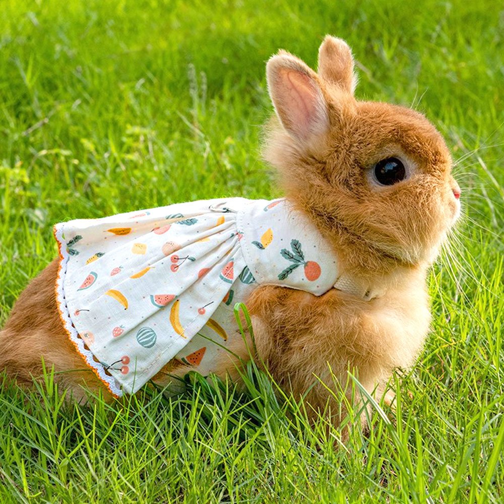 Your bunny harness doesn’t have to look boring. Picture your bun sporting a cheerful fruit-patterned dress while exploring the park, nose wiggling at every new smell. These fruit rabbit clothes combine a cute cotton dress with a functional harness and included leash. Just slip it over your rabbit’s back, adjust the belly straps, and you’re ready for a walk or an adorable photoshoot. Your fluffball gets to look stylish while staying safely connected to you.