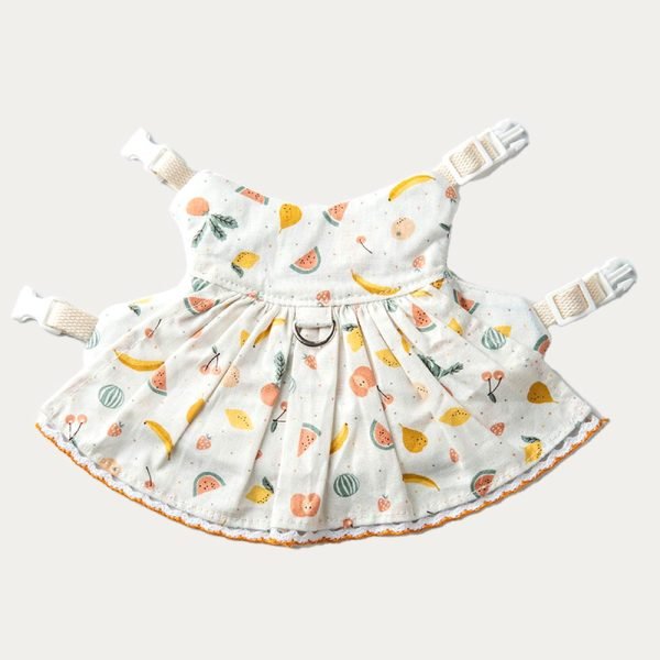 Whether it’s a sunny afternoon walk or a spring photoshoot, your bun is going to look ridiculously cute in this little fruit dress. 🍓