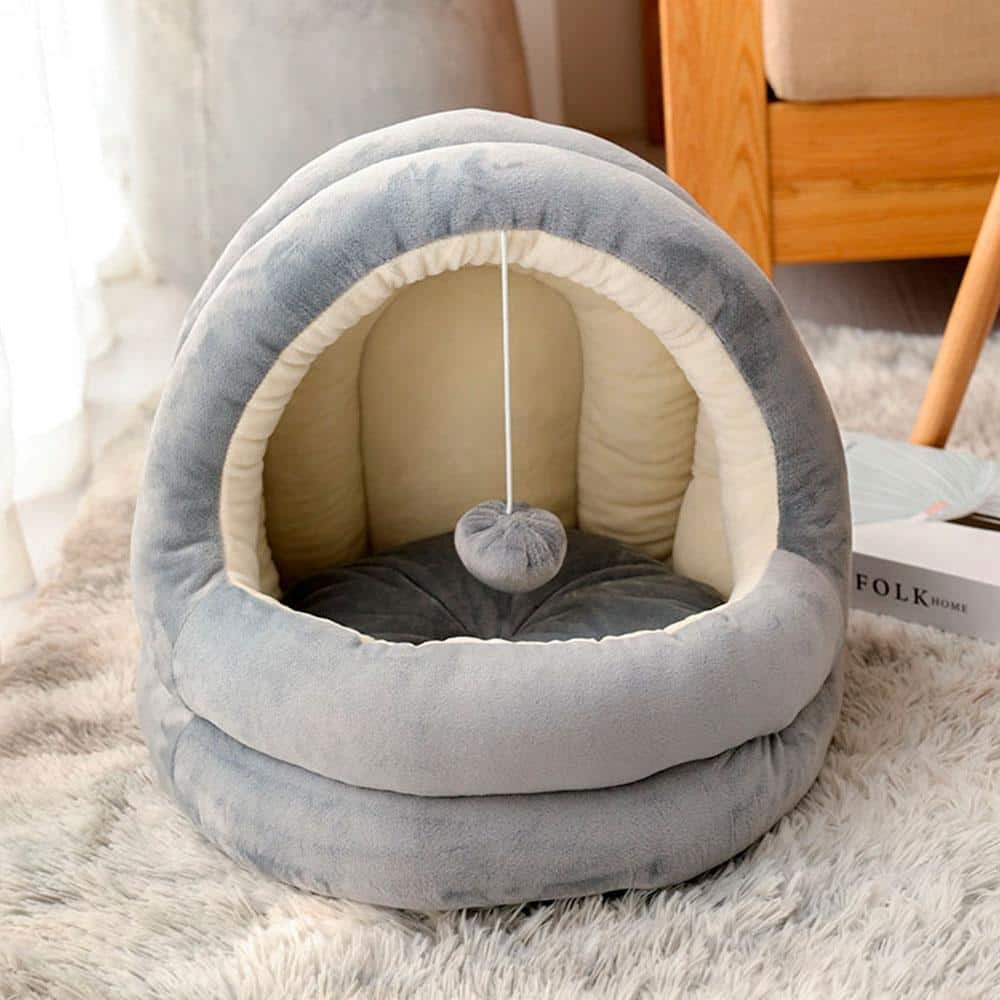 Every rabbit bed should feel like a safe little burrow, and this grey indoor rabbit house does exactly that. Picture your bun tucking herself inside after a wild session of zoomies, nose twitching as she settles into the soft velvet lining. The high sides wrap around her like a gentle hug, blocking out light and noise so she can truly relax. This cocooning basket combines a hideout and a sleeping spot in one simple piece, giving your fluffball a place that feels entirely hers.