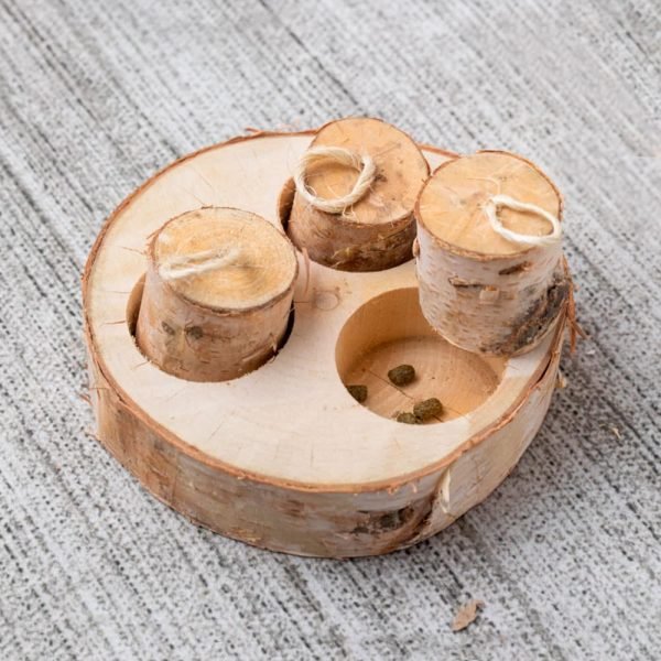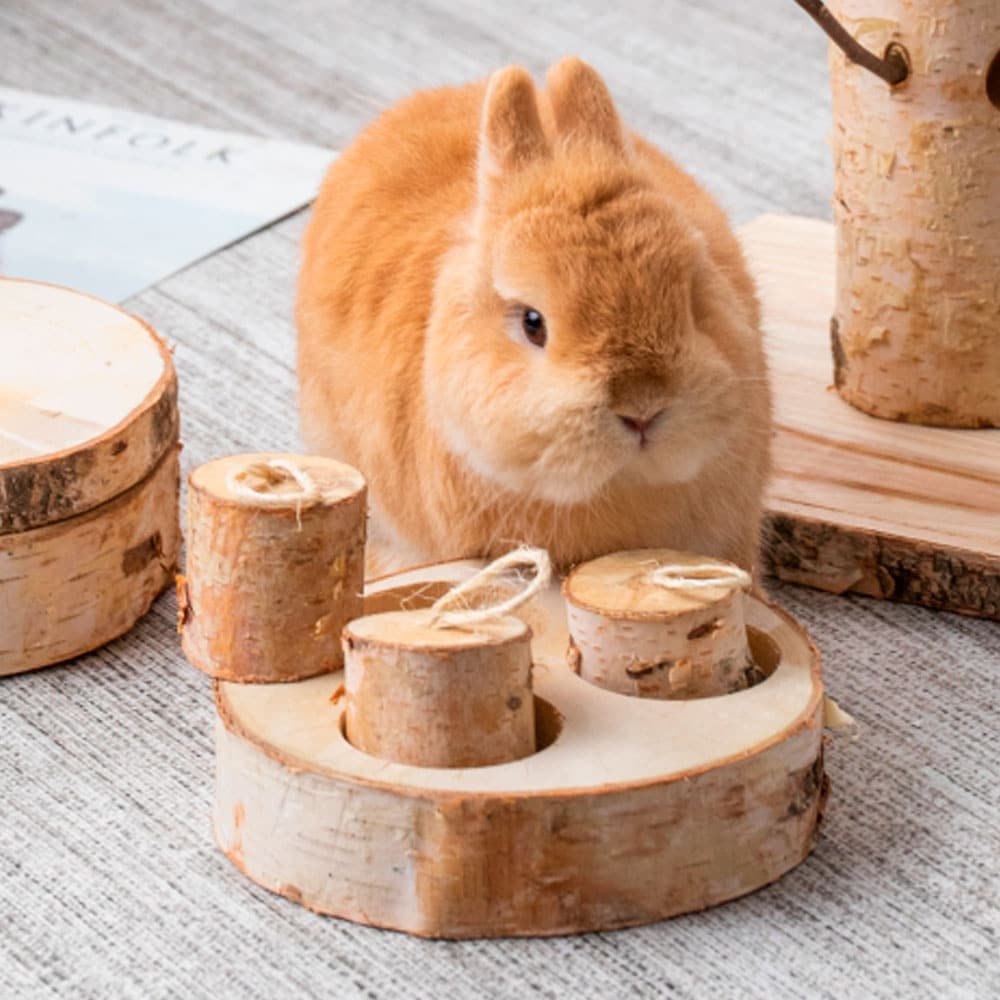 Rabbit enrichment starts with giving your bun a reason to think, sniff, and explore. Picture your fluffball circling a wooden puzzle, nose twitching with excitement, pawing at little wooden lids to uncover hidden treats underneath. This interactive toy with 3 wooden hollows turns snack time into a full brain workout. It taps into your rabbit’s natural foraging instincts, the same ones that drive them to dig, nudge, and investigate every corner of their space. Instead of just handing over a treat, you let your bun earn it.