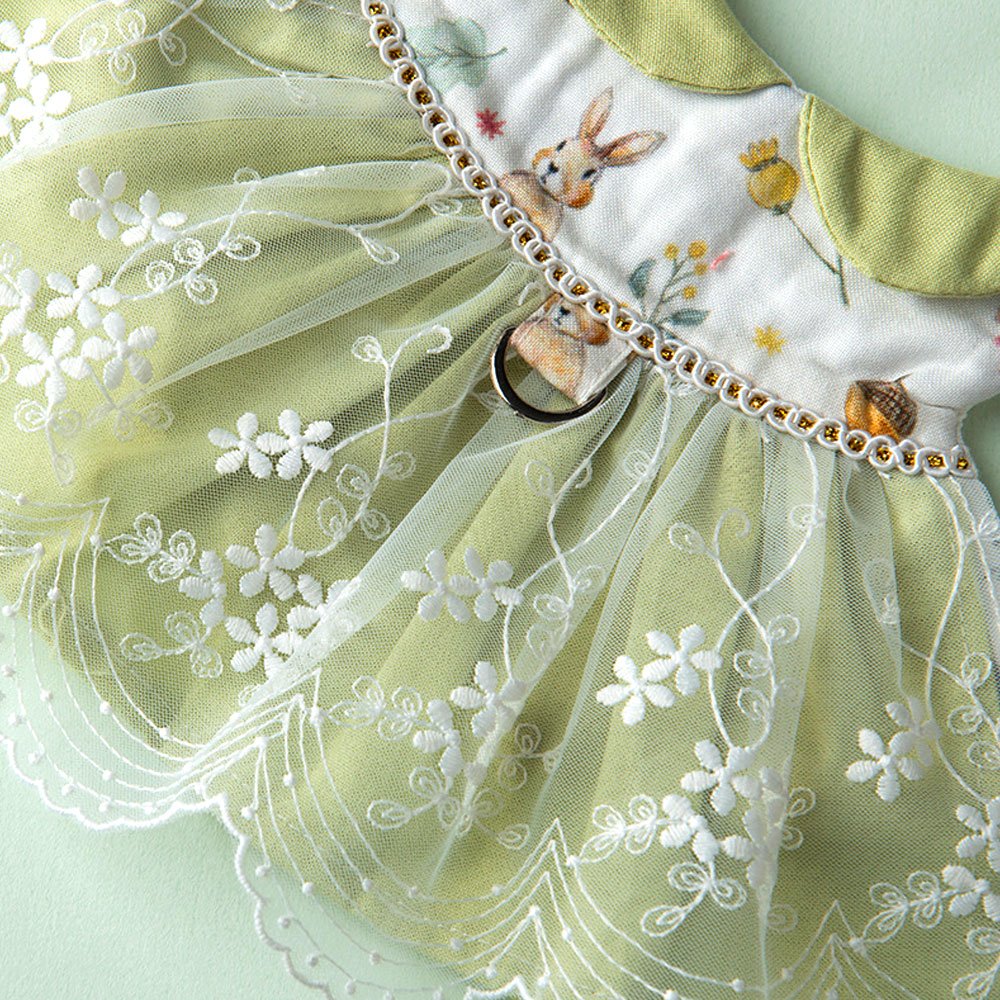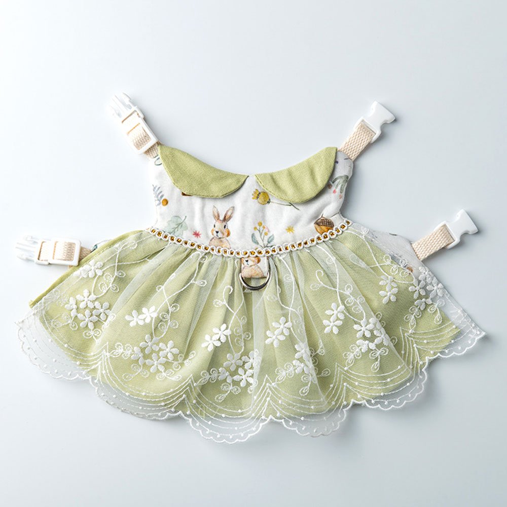 The inner layer is soft cotton that sits gently against your bun’s fur, while the outer embroidered lace gives it that fancy look. The adjustable clip belts fasten around the chest, not the neck, which is exactly where a harness for rabbits should sit. Your rabbit can still binky, hop, and do little zoomies without feeling restricted. Whether you are headed to the park or just taking photos in the backyard, these rabbit clothes keep things comfortable and secure. The included leash clips on easily so you are always connected to your little adventurer.
