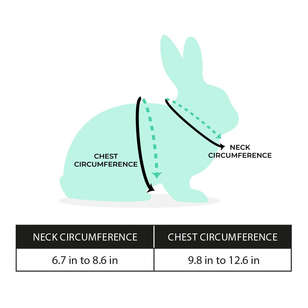 This dress harness fits rabbits with a neck circumference of 6.7 to 8.6 in and a chest of 9.8 to 12.6 in. That means it works well for small to medium breeds. Measure your rabbit before ordering.