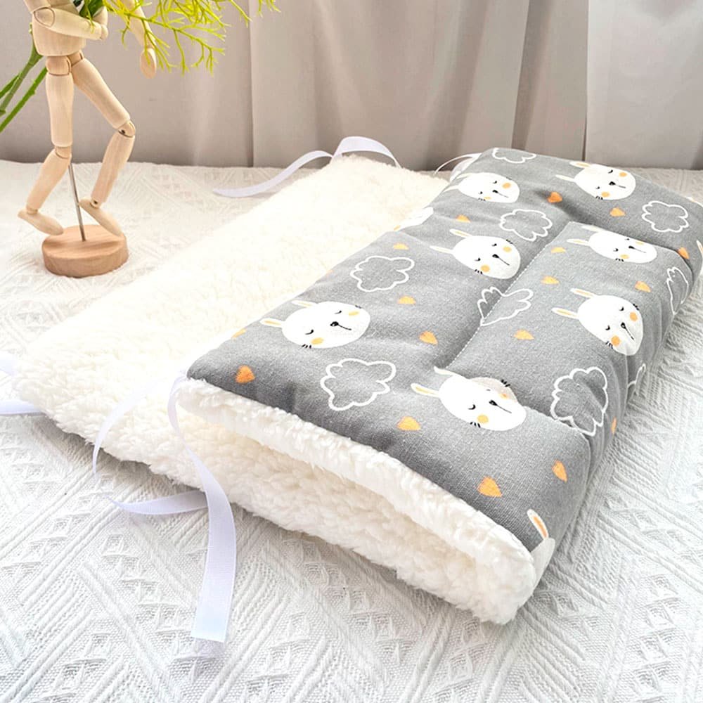 Your rabbit bed search ends here. Picture your bun flopping sideways onto a soft, padded surface after a wild round of zoomies, nose twitching with satisfaction as they sink into the fabric. This multifunctional bed for rabbits gives your fluffball a dedicated cozy spot that works as a sleeping pad, a carrier liner, or a hanging hammock tied to pen grids. It is double-sided, with a printed fabric on one side and fluffy fleece on the other, so your bun gets to pick their favorite.