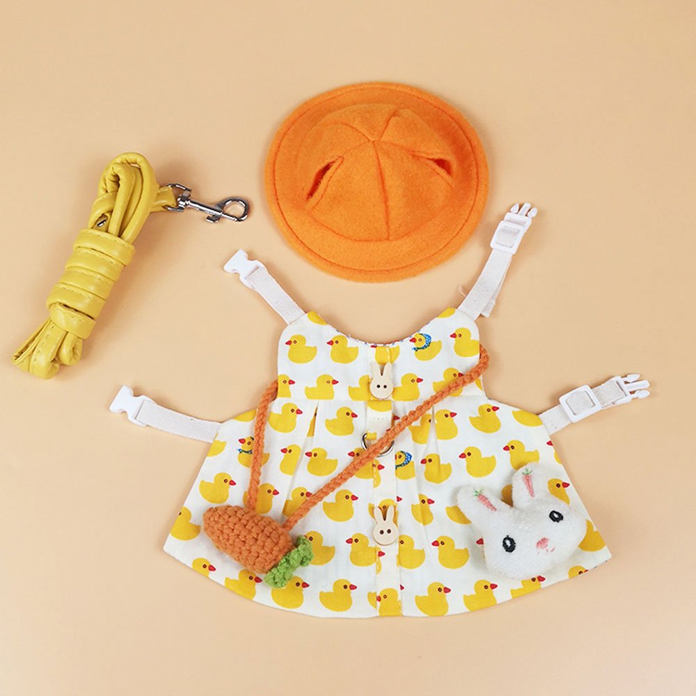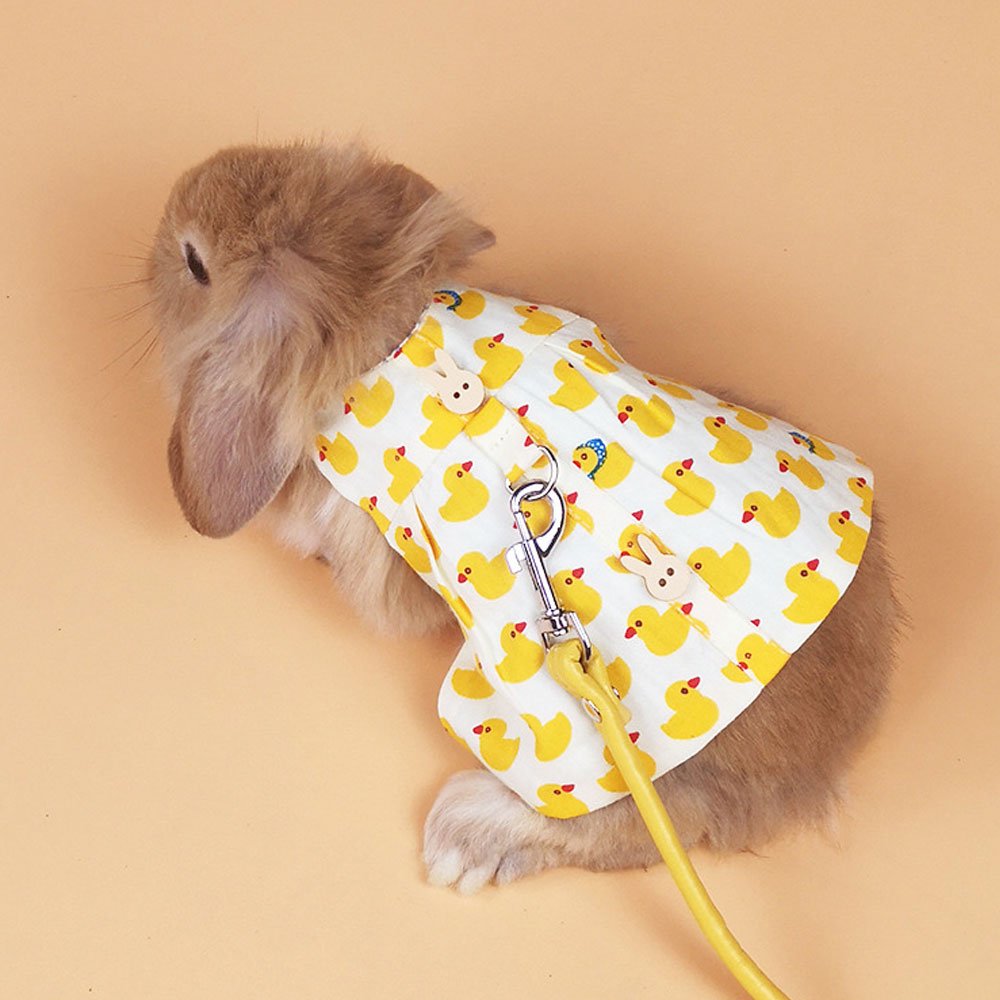 This bunny harness disguised as an adorable little dress might just be the cutest thing your bun ever wears. Picture your fluffball sporting a duck-print outfit with a tiny orange hat, nose wiggling as you snap photos in the garden. This clever two-in-one piece works as both rabbit clothing for indoor photo sessions and a functional walking harness when you clip on the included 49.21 in (125 cm) detachable leash. One outfit, two ways to enjoy it with your bun.