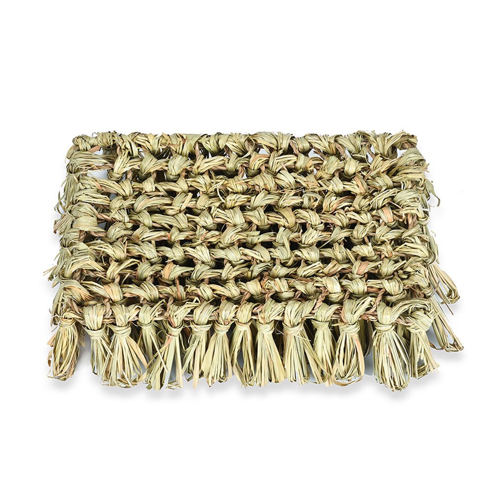 This rabbit forage mat is designed for everyday use inside your bun’s enclosure. Thanks to small hemp cords on the back, you can hang it vertically on the grid or simply lay it flat on the ground. Either way, your rabbit gets a fun, tactile surface to explore. These bunny enrichment toys work especially well when you tuck a few favorite treats between the straw fringes. Your bun will spend a surprisingly long time searching, sniffing, and nudging every strand. It is one of those rabbit toys that actually earns its spot in the setup.