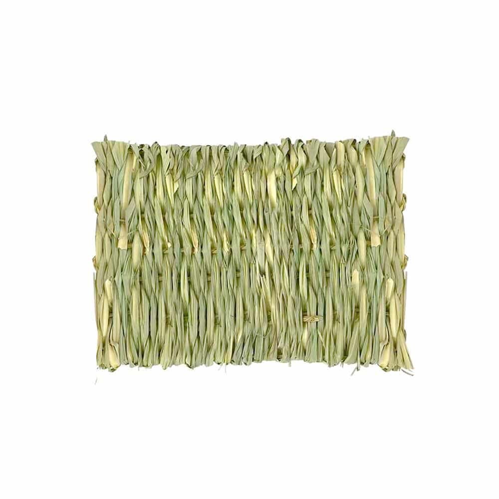 Lay this mat flat in your rabbit’s pen and watch your fluffball settle right in. The woven grass texture gives little paws a comfortable, non-slip surface to rest on between zoomies. It works beautifully as a rabbit chew toy and a resting spot at the same time. Many buns love rearranging it, flipping it over, and dragging it to their favorite corner. As a rabbit gnawing toy, it satisfies that constant need to chew while adding a different texture to their space. You can place it under a hay feeder or inside a tunnel for extra enrichment.