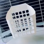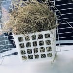 Place your hay feeder for rabbits near your bun’s litter box. Rabbits naturally like to munch hay while they do their business, so positioning the feeder at head height right next to the litter area works with their instincts rather than against them. Make sure the basket is low enough that your rabbit does not have to stretch uncomfortably, but high enough that bedding and droppings stay well away from the hay. If your bun tends to rearrange everything in the enclosure, double check the hook is secure on the bars before walking away.