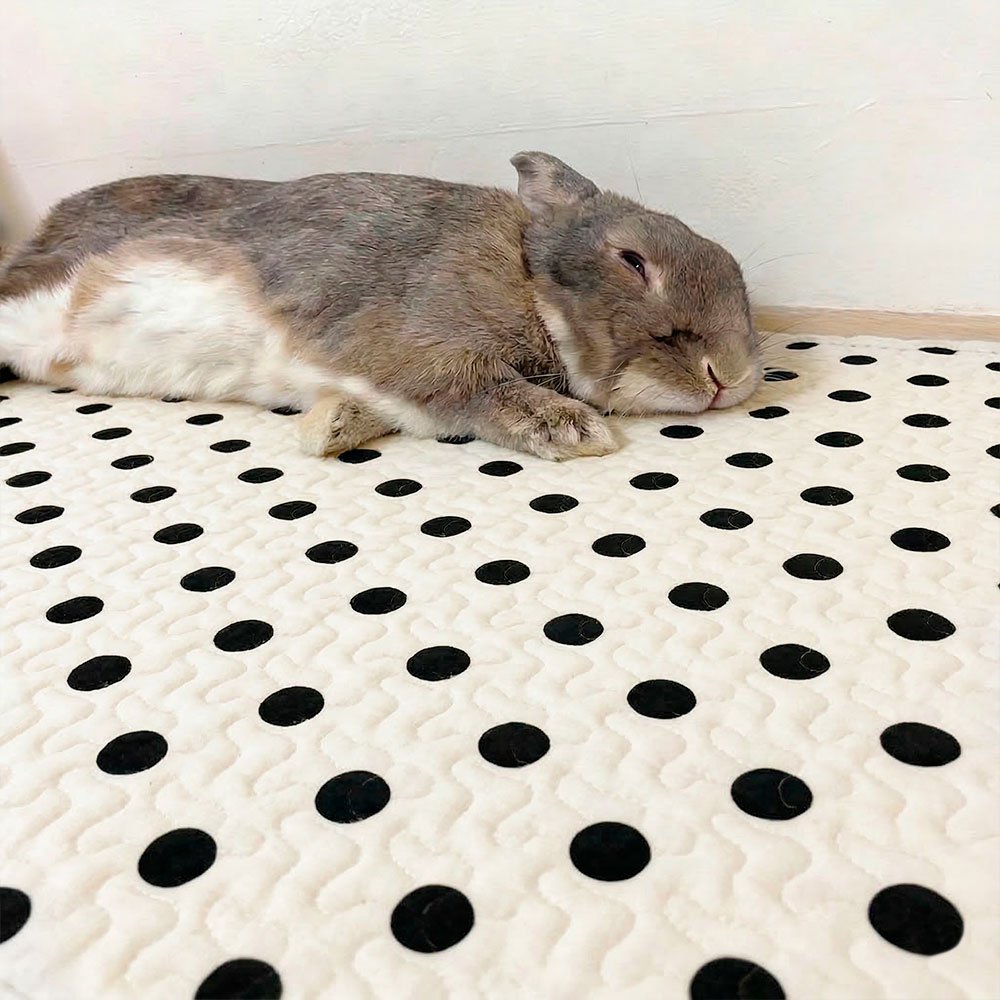 Every rabbit deserves a spot where they feel safe enough to fully sploot. This little polka dot mat might just become that spot for your bun. 🐰