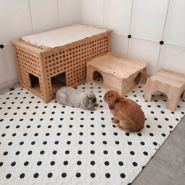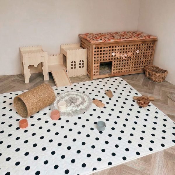 Your rabbit mat is about to become your bun’s favorite spot in the room. Picture this: your fluffball cautiously sniffing the soft cotton surface, testing it with a few careful hops, then fully committing with a dramatic flop right in the middle. This polka dot mat gives your rabbit a comfortable, non-slip floor where those little paws finally get the cushioning they need. Whether it’s zoomies at dawn or a lazy afternoon sploot, this is where it all happens.