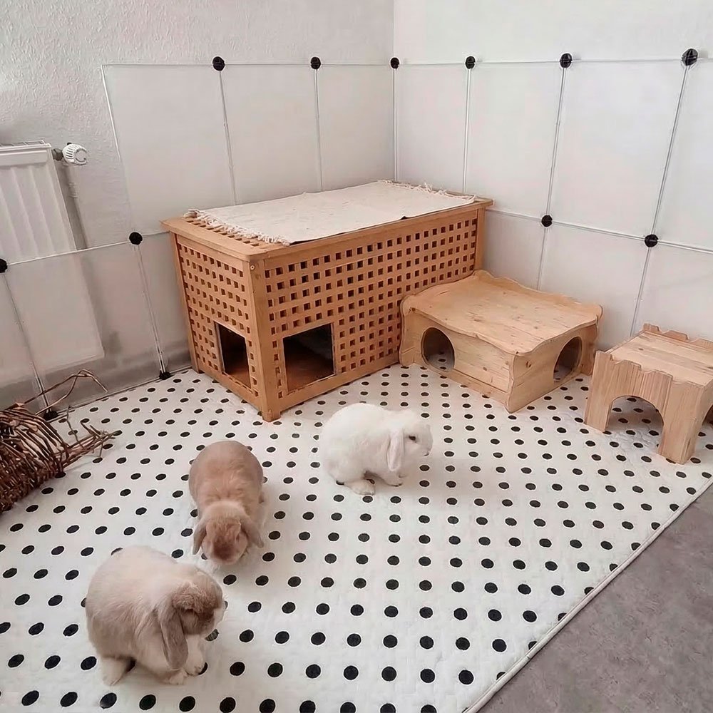 Rabbits spend over 80% of their time on the ground, so the surface under their feet really matters. This mat for rabbits gives your bun a dedicated space to run, rearrange, and rest without sliding around on hard floors. The soft cotton fabric feels gentle under sensitive foot pads, and the anti slip rabbit mat backing means your little one can launch into full-speed zoomies without the mat bunching up underneath. After all that activity, don’t be surprised when your bun flops sideways right in the center, completely satisfied. It doubles as a cozy rabbit playmat and a soft sleeping surface, all in one.