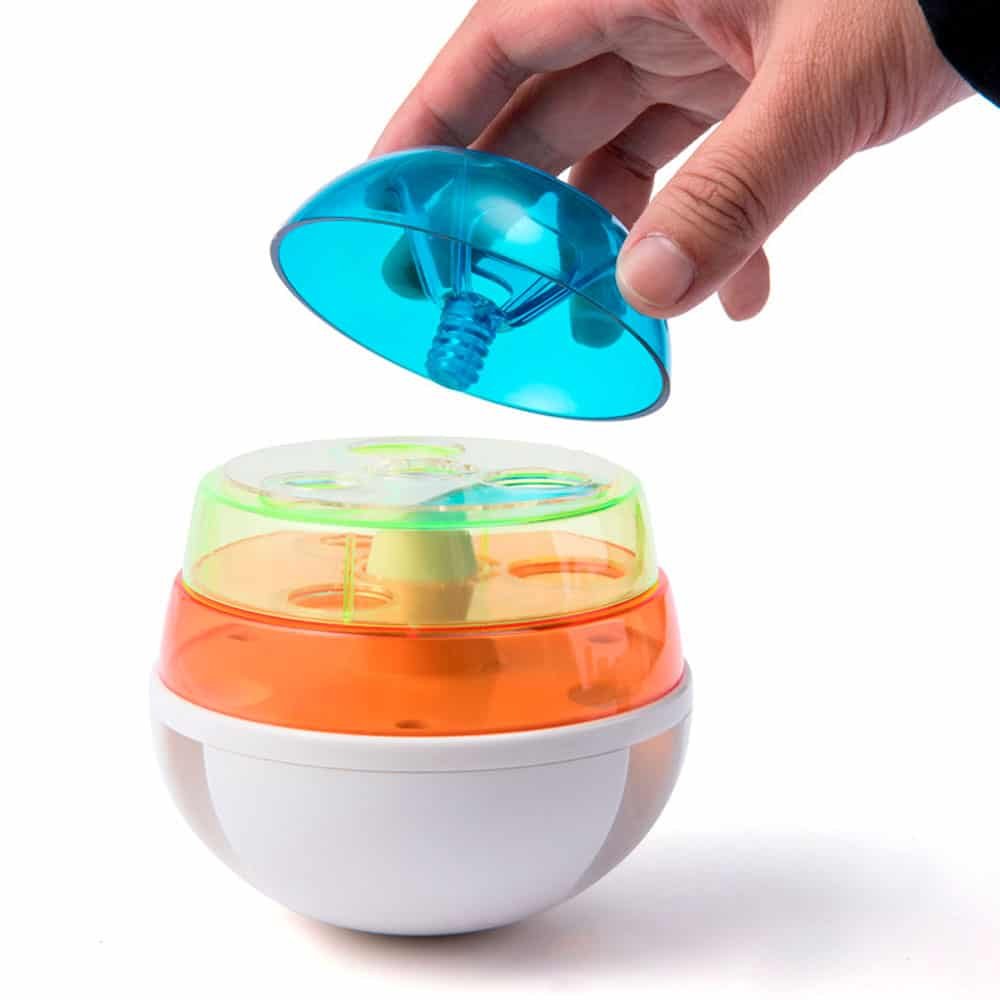 Drop your rabbit’s favorite treats through the small hole on the top blue level, and let the fun begin. Your bun will push the ball around, tilting and rolling it until treats pass through all four colored levels and finally drop out of the white bottom opening. This bunny toy turns a simple snack into minutes of focused play, keeping your rabbit moving and thinking at the same time. It fits easily into daily routines as a rabbit toy you can set up in seconds while your bun watches impatiently. These rabbit enrichment toys are a simple way to add real mental stimulation to any play area.